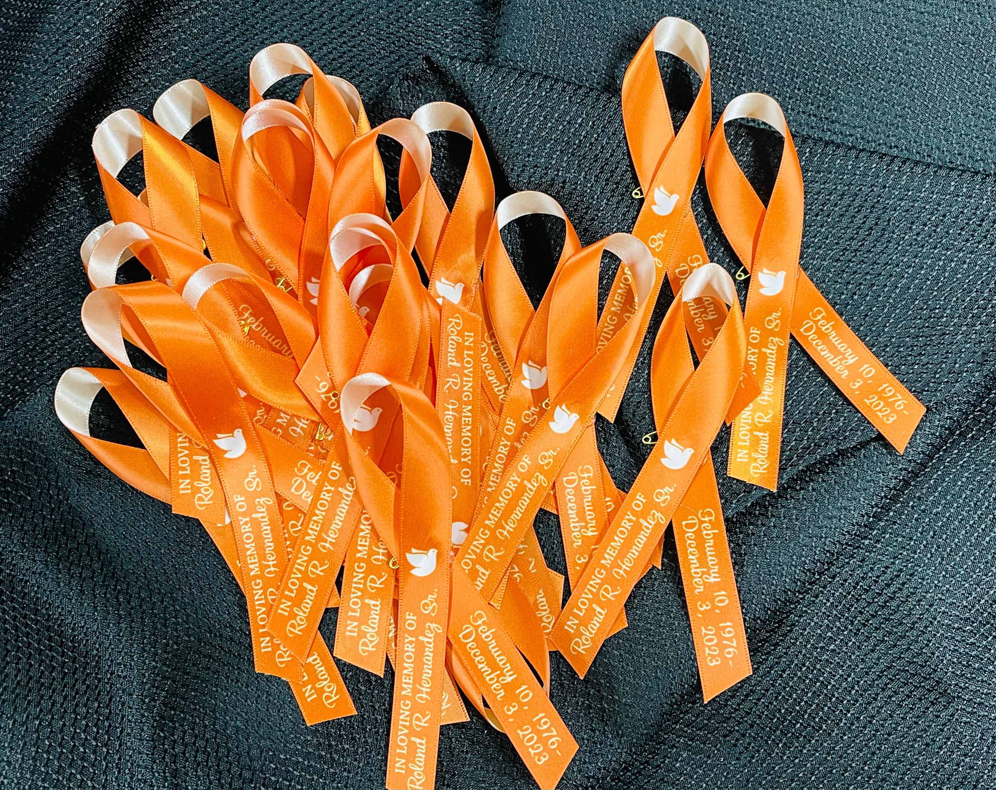Our quality cancer ribbons are made out of a double faced satin material, custom colored to your specs or cause, and clearly imprinted with your 3 lines of personalized text.