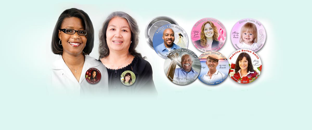 Memorial buttons are worn in loving memory of a loved one at a funeral ceremony, memorial service, death anniversary or anytime throughout the year. Memorial buttons can be found in many different sizes and shape and are meant to be worn on a lapel or shirt, by both men and women. They typically contain a submitted photo and 3 lines of personalized text for a special tribute. The standard memorial button size is 3" in diameter which accommodates the personalized information comfortably.