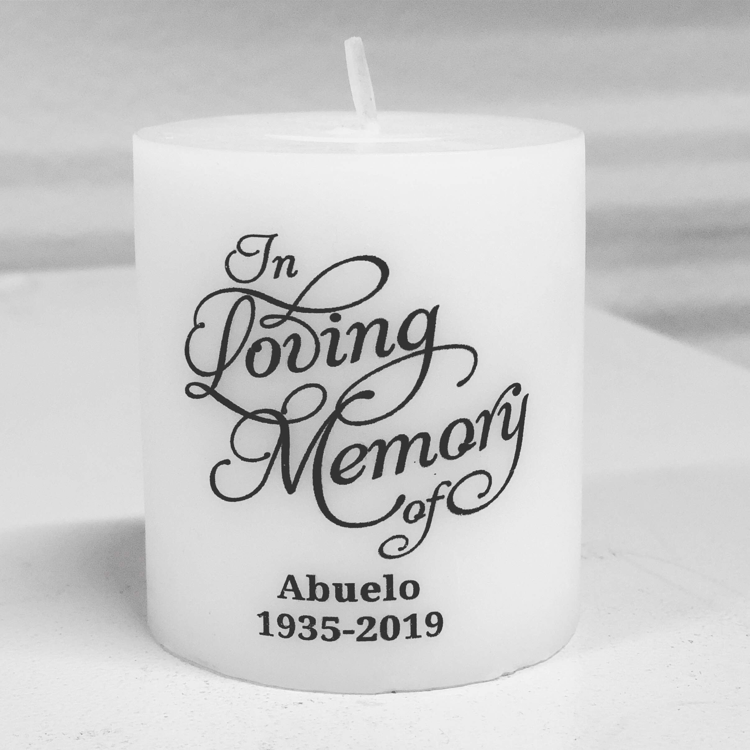 Our popular cylinder pillar memorial candles are wrapped with a variety of choices in our inventory of designs. Your personalized text and photo accompanies the design for the perfect memorial keepsake. Choose from a range of elegant designs to truly personalize your memorial candles to commemorate your loved ones.