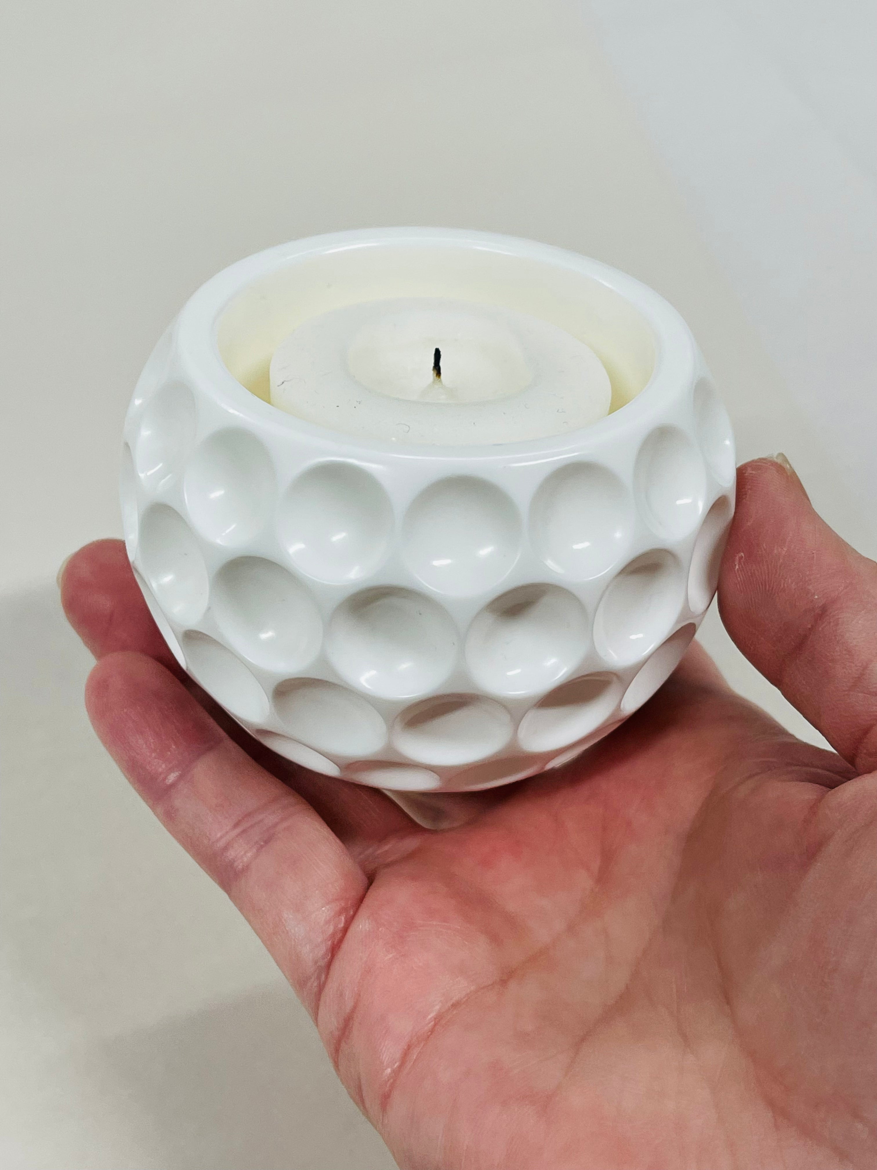 Special tea light memorial candle holder in a white container enables you to place any wax candle within its center.