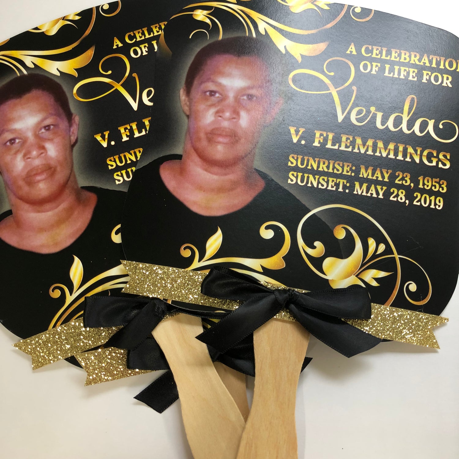 In loving memory hand fans or memorial fans are a heartfelt and functional tribute used during memorial services to provide comfort and commemorate the life of a loved one. These fans are thoughtfully designed to not only offer a breeze in warm settings but also to serve as a keepsake that mourners can cherish long after the service has ended. Typically made from sturdy cardstock and affixed to a durable handle, these fans are both practical and sentimental, designed to endure as a lasting memento of the day.