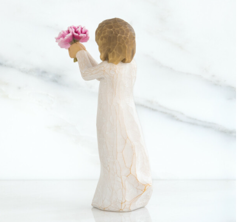 This special Willow Tree® figurine is one that conveys appreciation and thankfulness for for those who provided care and help during a time of bereavement. Giving this figurine is a special way to acknowledge someone who has been especially helpful during a time of loss. The thank you figurine holds a bouquet of lovely lavender flowers. Each piece are hand-carved figures which reveal a special expression through body gestures only… a tilt of the head, placement of the hands, a turn of the body. Each piece is designed to be open to interpretation from the viewer.